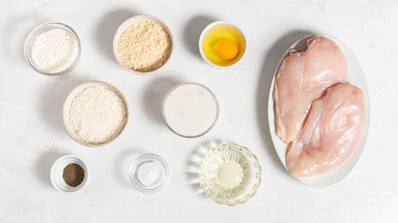 Gather all the ingredients for the crispy coconut baked chicken breasts recipe