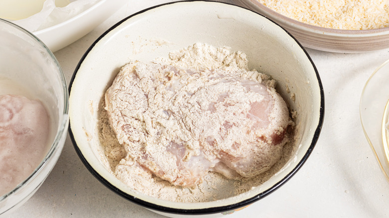 Step 7: Remove the chicken from the coconut milk and dip in the flour