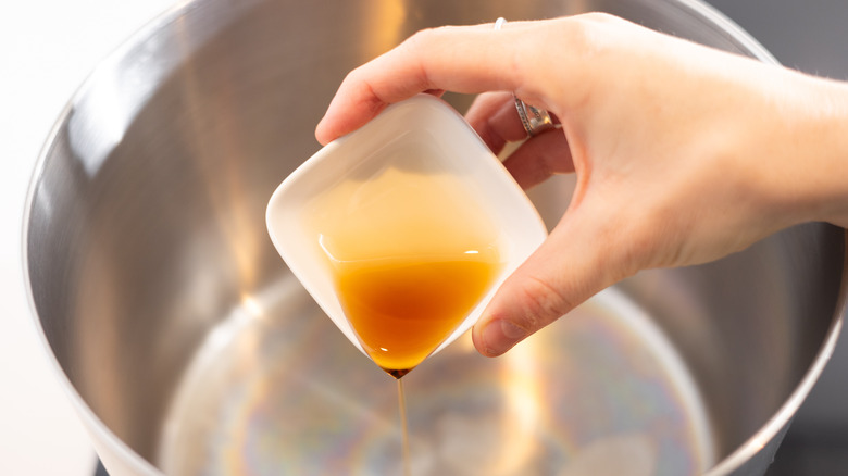 - Place a large pot over medium high heat and add the sesame oil and vegetable oil.