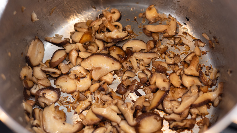 - Add the shiitake mushrooms, and cook for 5 minutes or until golden brown, stirring intermittently.