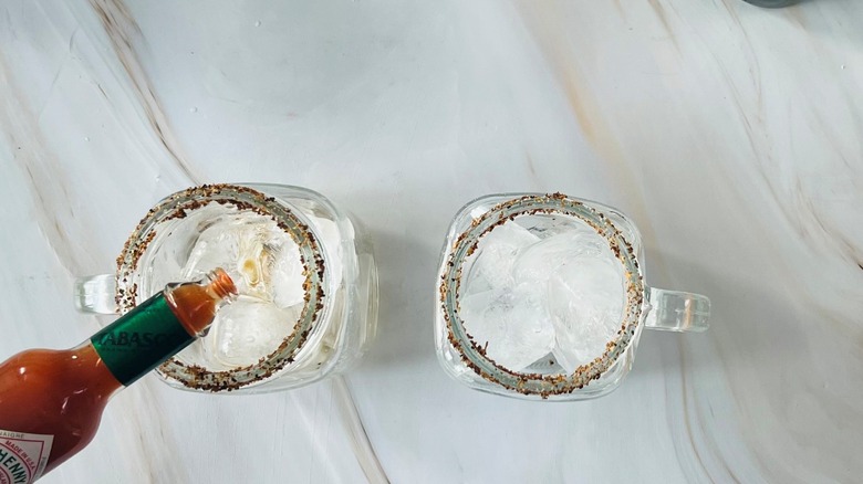 Possible change-ups in this recipe start with rimming the glass. De Witt suggests that "salt and chili powder can be used in place of Tajin," and you could also go with lemon juice instead of lime. Tabasco isn't the only hot sauce you could use, either, since you could also opt for a Mexican-style sauce like Tapatio or Cholula or a Louisiana one like Frank's RedHot or Crystal. As far as De Witt is concerned, "Any hot sauce will do," so even a fruity habanero one could work if you want some sweet heat.