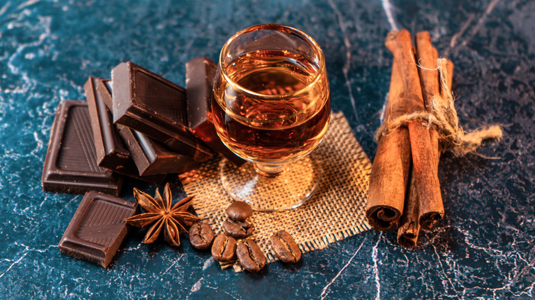 Bourbon and chocolate as a flavor pairing is nothing new. Go to any distillery and it's likely they have some dark chocolate on hand to accompany tastings. Plus, if you've ever had a bourbon-filled chocolate bon bon, you know what we're talking about. And the fact that bourbon accentuates chocolate's flavors like vanilla does is also no coincidence. In addition to the overall caramelized, full-bodied flavor of bourbon, the spirit actually contains vanillin, the main flavor compound that makes vanilla taste, well, like vanilla. These flavor compounds are transferred from the oak barrels to the spirit as it ages.