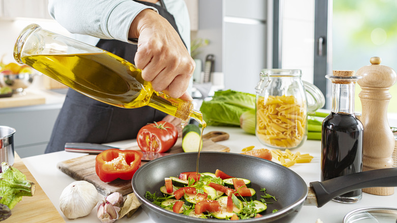 When food is kept at colder temperatures, issues can arise as well. For example, colder temperatures can cause condensation to form within food packages, which can cause mold or make the food go bad. Cold temperatures are troublesome for olive oil, too, and they are likely what's responsible for white spots in your olive oil. To tell if your olive oil is still safe to eat, simply warm it up to room temperature. This is how you can check to see if it's just benign separation causing the white blobs and not rancid or contaminated oil.