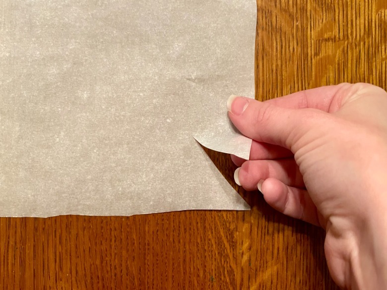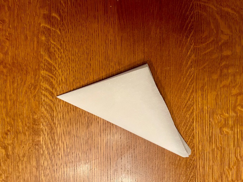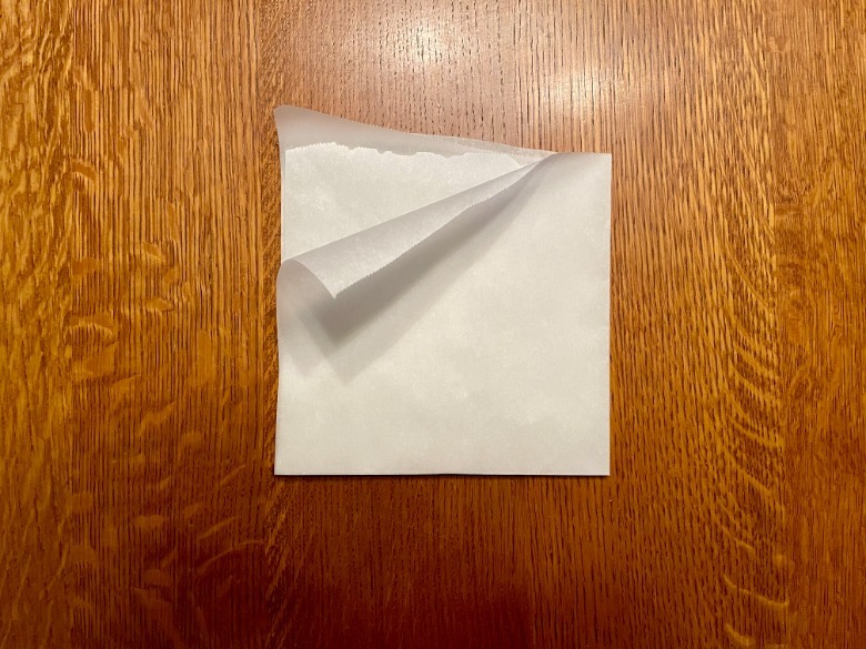Fold your square piece of parchment in half to create a rectangle. Then, fold it again to create another square.