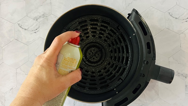 Grease the inside of the air fryer basket with cooking spray and set to 375 F.