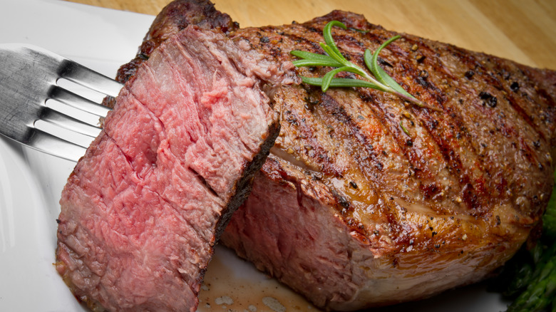 Even if you opt for the choice cut of ribeye instead of prime grade, you'll still likely end up paying a pretty penny for your steak. Prices will inevitably vary between different butchers and supermarkets, but choice ribeye could cost you $18 or more per pound (with prime going comfortably over $20 per pound). For this reason, Lomonaco warns that if you're new to grilling steak, you may not want to jump straight to expensive cuts like rib steaks while you build up your experience since it's a tricky method to master. "I recommend your steak journey begin with more forgiving and affordable cuts like London broil and chuck steaks before moving into the area of the higher cost rib steaks and strip steaks."