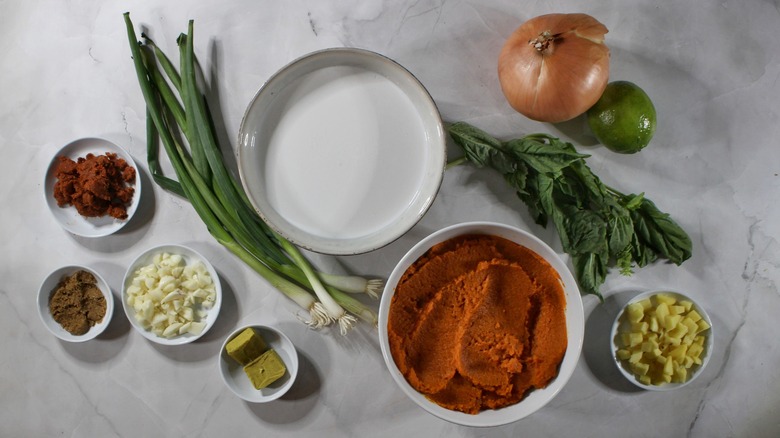 Gather the Thai-inspired coconut and pumpkin soup ingredients