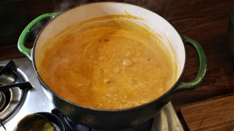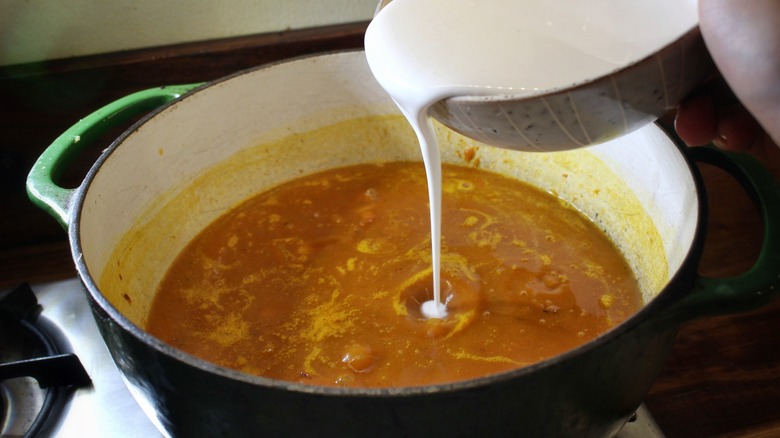 - Add curry paste, coconut milk, and broth and mix well to combine.