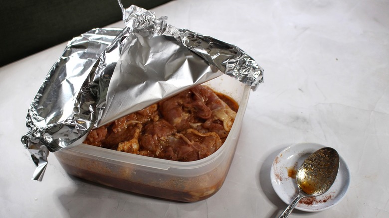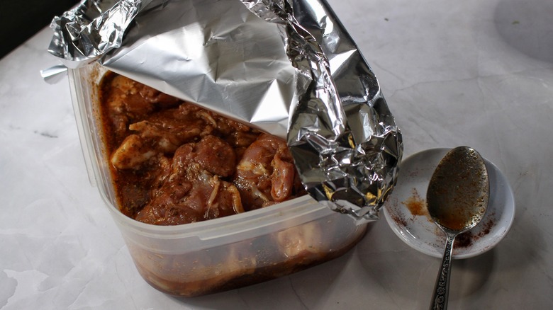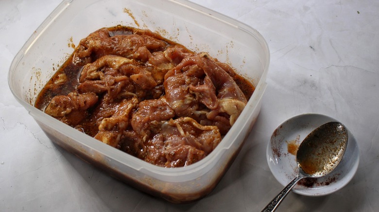 - Push down the chicken to submerge it in the marinade, cover, and store in the refrigerator for at least 4 hours.