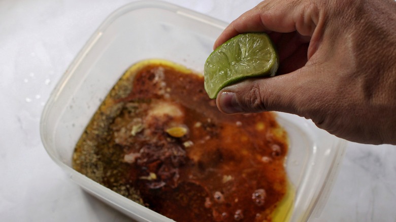 The heart of this recipe is the adobado marinade. Olive oil keeps the chicken thighs juicy, while a blend of spices adds a bold aromatic flavor and fresh orange and lime juice add sweetness and zing. After a few hours of marinating and a few minutes on the grill, you have yourself some truly excellent taco filling.