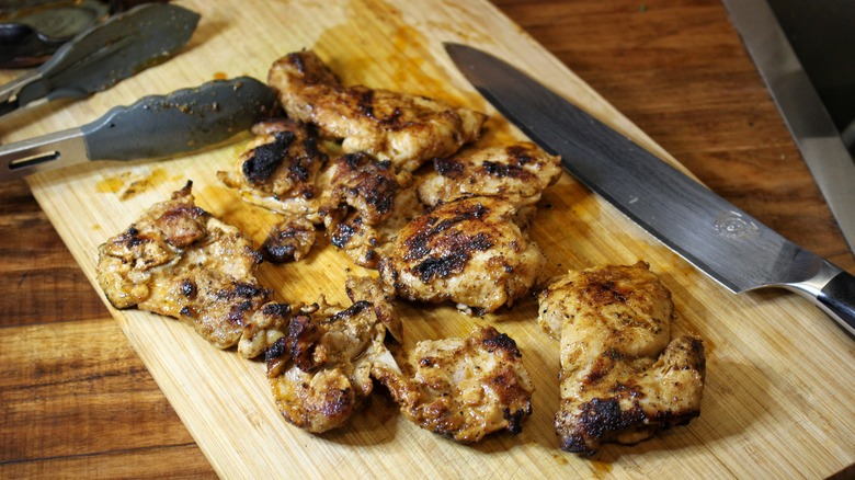 Remove the chicken from the grill and allow it to rest for 5 minutes.