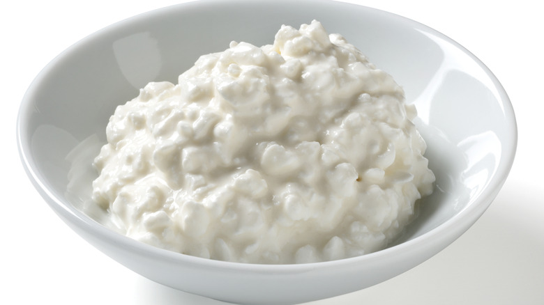 Egg salad is often a crowd-pleaser, and it's relatively easy to make. Most egg salad recipes require few ingredients and have simple directions. If you're looking to elevate your egg salad with some new flavors and ingredients, try replacing the mayo in the recipe with cottage cheese. There's a host of benefits. Not only will it give your dish a protein boost, but it will also make it creamy and light. The protein-packed cottage cheese can also make your dish more filling since high-protein foods tend to be more satiating. Egg salad isn't the only recipe that can benefit from this addition, either; cottage cheese is the secret ingredient in many mac and cheese, frosting, cheesecake, and scrambled egg recipes.