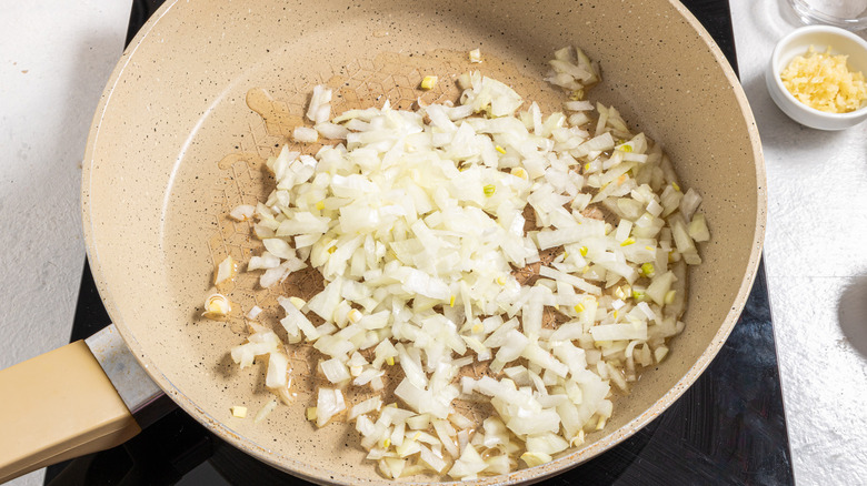 - Add onion and cook until slightly golden, about 7-8 minutes.