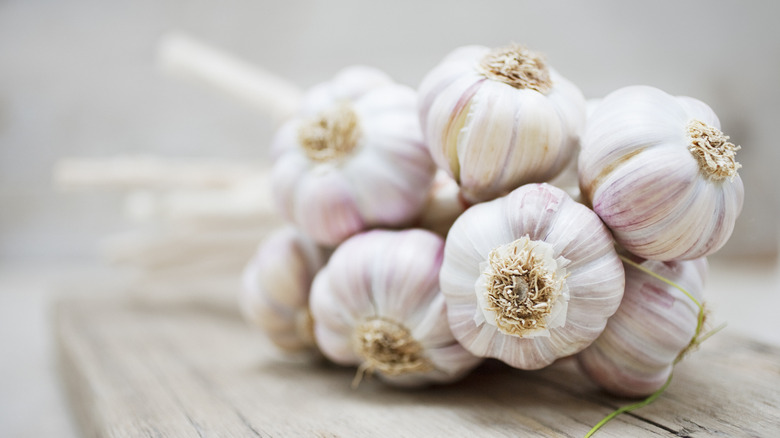 For this particular sprout flavor enhancement, it's important to remember that garlic can go from "cooked and flavorful" to "burnt and unpleasant" rather quickly. On the other hand, Brussels sprouts need around 10 minutes to reach al dente. Keeping all of that in mind, start by sautéing the sprouts (in oil or butter) for 5 minutes — or until they're about halfway to done — and then add the garlic. Stirring or tossing the contents of the pan regularly will also help to avoid burning.