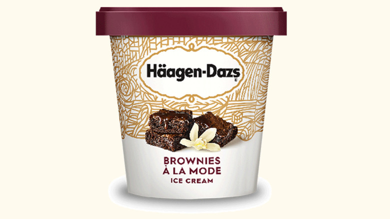 Brownie a la mode is a popular dessert option in restaurants and diners across the United States. When used to describe dessert, a la mode indicates it comes with ice cream, so it's no surprise that brownie is a common addition in ice cream flavors. The Häagen-Dazs Brownies a la Mode flavor had soft, chewy brownie pieces and rich fudge swirls within a classic vanilla ice cream.