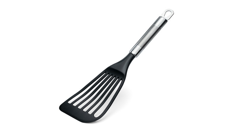 With a curved edge, thin, flexible blade, and slotted design, a fish spatula is just as helpful for keeping juicy burgers intact as it is for scallops, tilapia, or mahi. It lets the juices drain out, keeping your filet from deforming. Even though it is thin, the metal spatula and sturdy handle allow chefs to dislodge seared meat or fish from the pan without letting it fall apart. Equally at home on the baking front, a fish spatula is the perfect tool to get cookies off the baking sheet or brownies out of the pan without the dreaded crumble. There is even a fish spatula included in the Smithsonian's exhibit on cooking, "Food: Transforming the American Table." The wooden-handled spatula is part of a tool kit representing the preferred tools that made home cooking so popular.