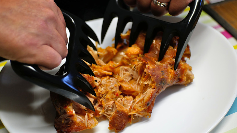 You can make pulled pork, chicken salad, or any number of other recipes so much faster and easier using a meat shredder. Due to their resemblance to claws, they are often called meat claws. Because they have evenly spaced edges, a meat shredder creates more uniform pieces of meat that you can use in cooking. This creates a more cohesive dish that works well with sauces or condiments. If you are making a large batch, a meat shredder will also save your hands and wrists from the repeated and tedious action of shredding with a fork or knife. It pulls through more meat with each swipe compared to a smaller table fork. It also breaks down the fibers much better than cutting with a knife.