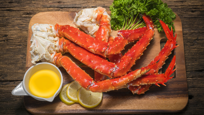 King crab is a rare sight at Costco, especially in recent years, as Alaskan king crab fisheries have come under scrutiny. The Bering Sea, where many of these fisheries are based, experienced a devastating heat wave in 2019 that raised water temperatures and melted sea ice, completely upending the local ecosystem. Subsequently, populations of king crab dropped so low that the Alaska Department of Fish and Game canceled the 2021-2022 and 2022-2023 red king crab seasons. In previous years, American stocks of king crab could be bolstered by king crab imports from Russia, but these were banned in the aftermath of Russia's invasion of Ukraine.