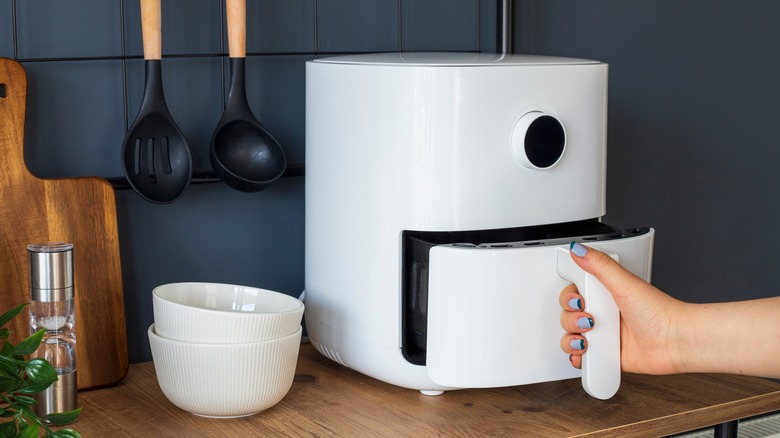 Homemade potato salad can be enhanced with plenty of flavors, but in its simplest form, it's just cooked potatoes tossed in mayonnaise. Potato salad is commonly made with boiled potatoes, but you can roast the potatoes for added texture as well. And while it makes a perfect side for any outdoor barbecue, an air fryer can surprisingly transform it into a crispy, delicious variation of its former self.