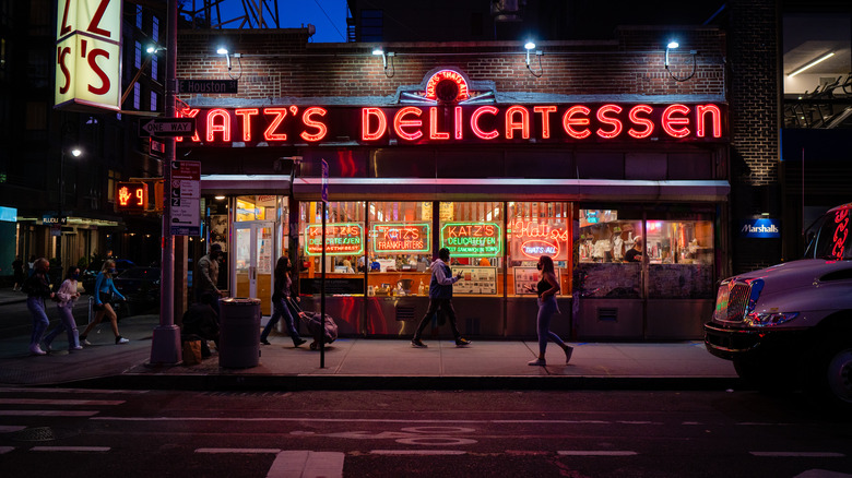 Anthony Bourdain was no stranger to slurping up warm bowls of pho in random hole-in-the-walls or crouching over a sticky countertop to enjoy a plate of skewered meat, so it might come as a surprise to some that he'd frequent a large institution like Katz's Deli. The restaurant was famously featured in the classic romcom "When Harry Met Sally" and is one of the must-visit delis of America for both New Yorkers and tourists alike. Nevertheless, Bourdain was still a big fan of the flavor of these pastrami sandwiches and knew that Katz's was popular for a reason.