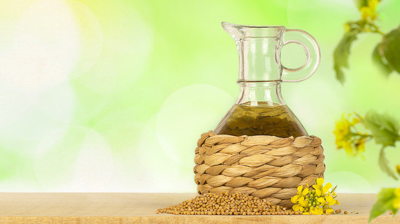 To be more precise, mustard oil isn't totally illegal in the U.S.: It's actually just illegal to sell it as food. That's led to a workaround where mustard oil can be sold if it's intended to be used for a massage oil, or to be applied to the skin or hair. These mustard oils legally have to be labeled with the words "for external use only," although some home cooks reportedly use them for cooking purposes — and the idea that some people are cooking with a product that's marked "for external use only" likely doesn't help with the stigma around mustard oil.