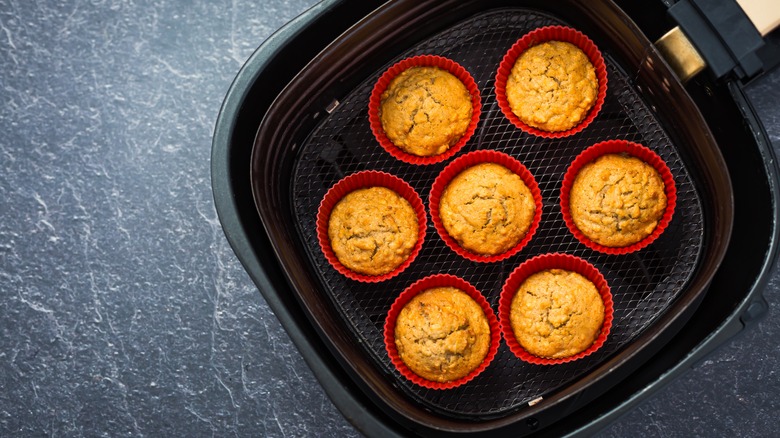 To take the convenience and portion control even further, you could always embrace the single-serve mug cake craze of years past (who remembers?), or you could just whip a small batch of cupcakes in the air fryer. Small batch cupcakes are not quite as big a lift as a whole cake or even a baker's dozen of cupcakes, but they offer a bit more payoff than a mere single serving size. They're the perfect in-between sweet spot, if you will. Because anything a conventional appliance can do, your air fryer can probably do it better — and certainly, quicker.
