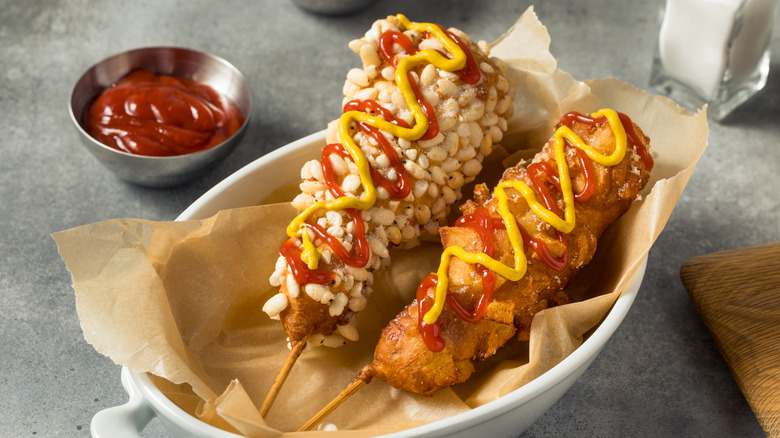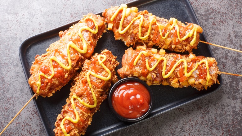 Some people think a big reason for the growing popularity of this dish is due to the growing presence of Korean culture in the West over the last few years. From Korean beauty products to music, knowledge of Korean culture is spreading across America and, with it, a growing desire to dive deeper into every facet of it, cuisine included. (Don't even get us started on Korean fried chicken.) Still, others say that the Korean corn dog is just another internet trend and might have the same short-lived fame in the West of other foodstuffs like TikTok's feta pasta. Well, a few years have passed since the Korean corn dog's initial rise to fame in the U.S., and it still seems to be going strong. All we know is that this treat is packed full of flavor, so we hope it sticks around.