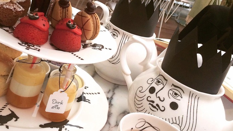 The Sanderson Hotel in London has a lavish courtyard with seating centered around lush plants, a cascading fountain, and chic white décor, which includes the visible chairs at the Long Bar (that feel like an ode to Billy Idol's "Eyes without a Face"). In the middle of the urbanscape that is London's Soho district, the Sanderson Hotel has cultivated the perfect Tulgey Woods-like backdrop for their "Alice in Wonderland"-themed tea experience aptly named the Mad Hatters Afternoon Tea. Lovers of Lewis Caroll's famed novel will feel as though they have fallen down the rabbit hole just in time for tea.