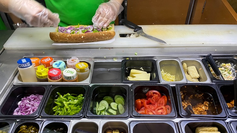 Subway regulars will know that this tip goes against the usual order of how the chain's sandwiches are assembled. But it's okay to do things differently — at least, for most Subway employees. An interesting Reddit thread includes one Sandwich Artist complaining about this idea, pointing out that it disrupts the usual assembly line: Workers have to move to the far end of the sandwich-making table, possibly skirting around a fellow employee, to get to the sauces first. This comment gleaned protests from Subway fans and even other Sandwich Artists, though, so don't be shy — this is far from a big mistake to make when ordering at the chain.