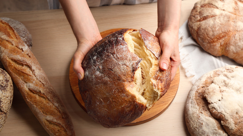If you're thinking of branching out and baking your own bread, don't expect it to stay fresh and soft at room temperature for days on end like the store-bought version does. Commercial bread contains preservatives and additives designed to extend the shelf life and keep it soft as long as possible. DIY bread does not, which is why you might find your freshly baked creations turning stale the day after they come out of the oven. You can always soften bread that's gone stale, but knowing how to store your loaves will prevent you from having to correct this issue so soon; it also helps ensure the bread doesn't grow mold.