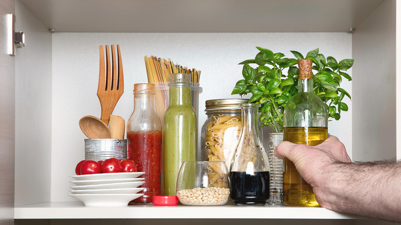 Besides being rich in antioxidants and potentially beneficial at reducing the risk of heart disease, stroke, and Alzheimer's, olive oil is just plain delicious. Americans consumed 381,000 metric tons of this iconic fat in 2022 (per Statista), which means there are a lot of bottles of it sitting in our kitchens right now. The key question is: Where are you keeping your olive oil? If you're making one or more of these common storage mistakes, you could be killing its shelf life.