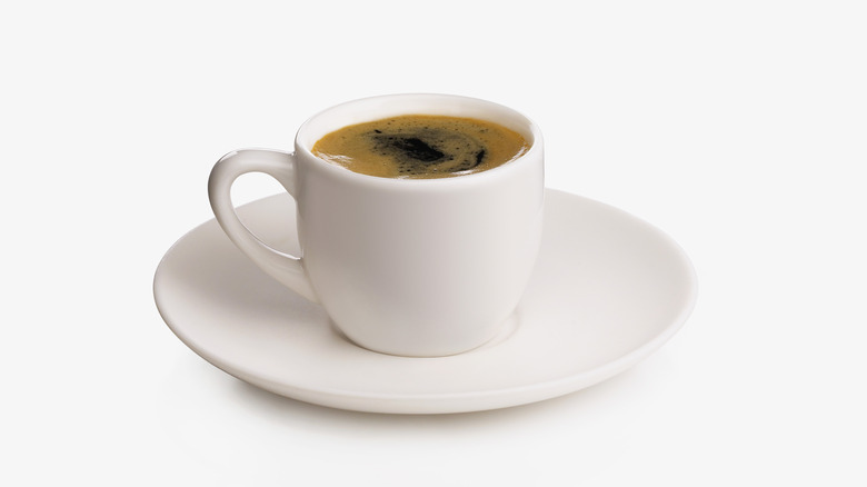 On an Italian menu, caffe traditionally means espresso. You'd get a small cup of strong espresso and pretty much drink it quickly.