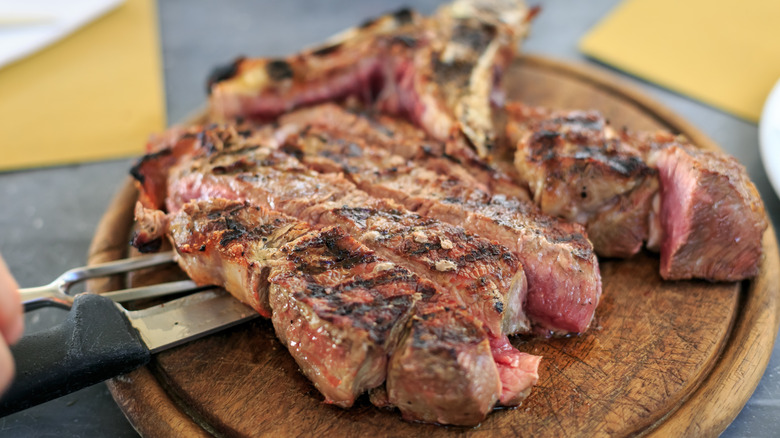 As with all the foods we've been talking about, the secondo course is also connected to food available and popular in the region and the restaurant you're eating at. Many Italian restaurants in America combine regional favorites, but some prefer to focus entirely on the cuisine of one region. For example, a dish synonymous with Florence is bistecca alla fiorentina. This is a beef dish from the cut of the sirloin of a particular breed of cow, the Chianina breed. It's basically a huge T-bone, and served very, very rare. Osso Buco, which was popularized in the Milan area, are braised veal shanks featuring bone marrow still in the bone. Finally, grilled octopus is a favorite from areas near the coast such as Naples.