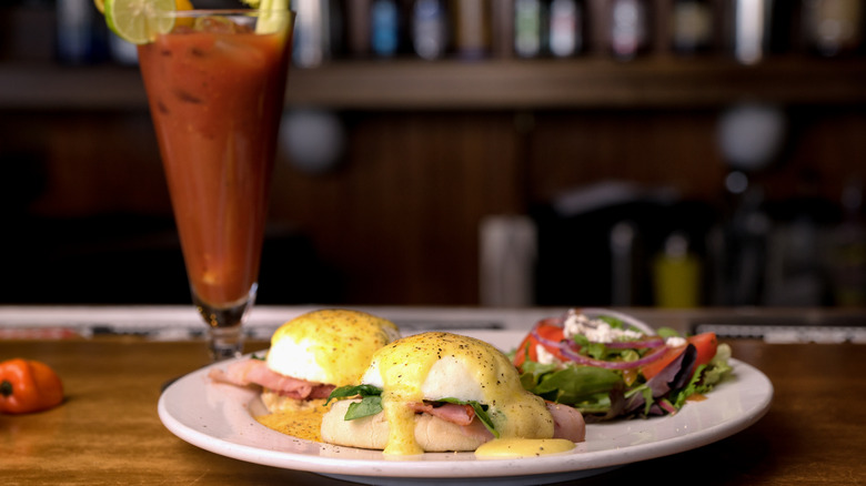 Whether you're pairing wine with brunch or going the beer or cocktail route, the number-one rule when drinking alongside eggs is to keep it light. The best brunch cocktails are made with light alcohols, particularly Champagne and sparkling wines, as the bubbles help cut the richness of creamy egg dishes. Another common theme in brunch cocktails is citrus, which is the perfect flavor to pair with eggs. As Nicole Brisson explained to Chowhound, "If you don't have the acidity and freshness, the flavors feel disjointed."
