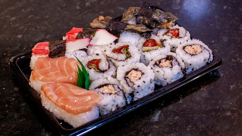 If you've made a rest stop and are craving sushi (for whatever reason), rolls without any raw seafood will have the least likely chance of containing anything spoiled. California rolls, for example, which feature imitation crab, rice, avocado, and cucumber, are a fairly safe choice. Rolls that do contain raw items, however, carry a higher risk of parasites and can go bad incredibly fast. For instance, lower quality sushi is made with tuna scrape — basically, the meat that remains after filets are removed as whole cuts. It's been linked to salmonella outbreaks, too (via the Centers for Disease Control and Prevention), and is sort of reminiscent of "pink slime" from the beef industry. Suffice it to say, eating uncooked fish is a bit of a risk no matter what, so it's best to leave said risk for a legitimate sushi restaurant — not a gas station.