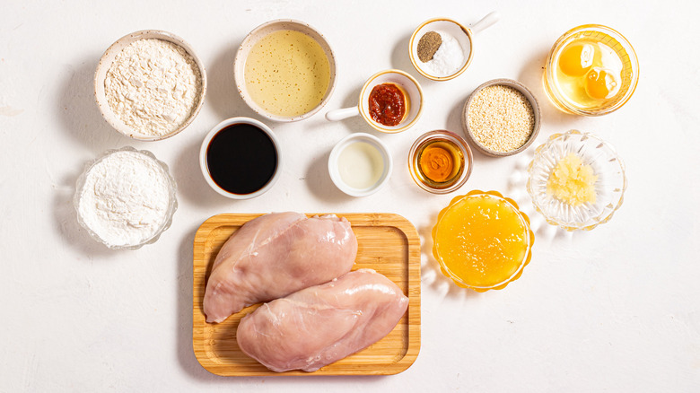 Gather all the ingredients for the sweet and spicy sesame chicken recipe