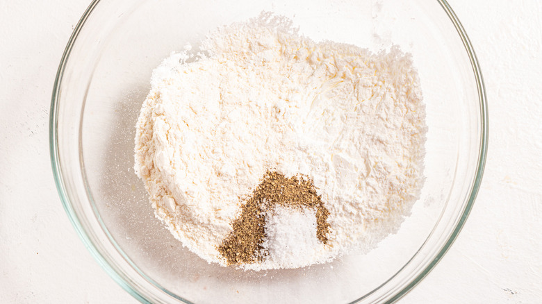 - In another bowl, whisk the flour, the remaining tablespoon of cornstarch, salt, and black pepper.