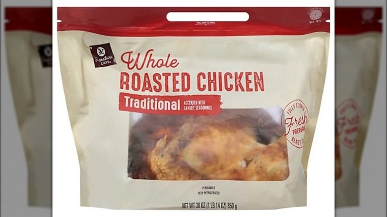 Kroger has a reputation for being hit-or-miss when it comes to rotisserie chicken. When they're done well, the chickens are flavorful and delicious but they can be overcooked or undercooked at times. Kroger offers a savory seasonings roasted chicken and a version seasoned with garlic and herbs. However, many customers wanted a stronger garlic flavor and more zest to the chicken. Some reviews noted that their chicken was dry while others ended up with a bird that was still raw. The lack of flavor was one of the only consistent complaints.