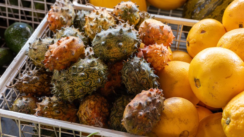 You've likely never stumbled across a kiwano at your local store or farmer's market, because the fruit is only readily available in certain pockets of the world — but its availability is growing. The melon hails from Africa, often relied upon for the diets of those in the deserts of Southern Africa, but has spread to numerous countries across Southern and Central Africa, and made its way to New Zealand, Australia, Europe, and even in some parts of the U.S. now — like California.