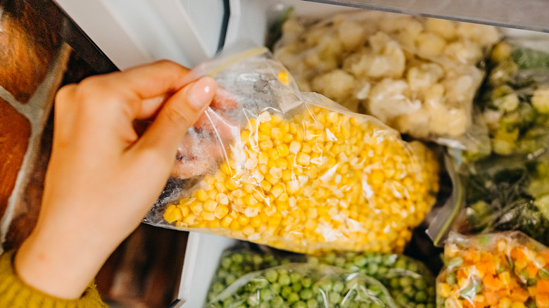 It's hard to beat fresh corn right off the cob. But the reality is that most produce has a season, and you can't always find good-quality corn year round. Plus, shucking it can be a pain, so there are just times when using frozen corn is easier. Frozen corn is pre-sliced off the cob and broken up into individual kernels, making it perfect for adding to salads or topping off tacos. Plus, bagged frozen veggies are loaded with the same nutrients as the fresh kind but are much easier to keep on hand. But if you're cooking it and ending up with mushy, flavorless kernels every time, then you're probably doing it wrong.