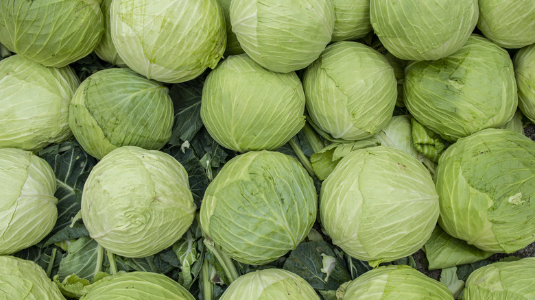 Cabbage is another versatile veg that takes on other flavors really well. This means you can grab the cheaper stuff and it won't really make a huge difference to your dish's ultimate taste profile. Especially if you're cooking it down. "I just get the most run-of-the-mill cabbage I can find in the grocery store," Leckie says. "And it goes so far... get a nice big one and they last. They last in the fridge forever."