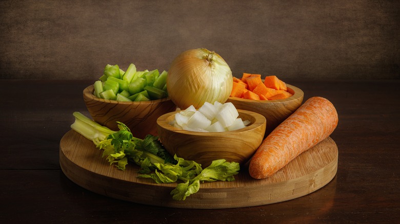 Organic or locally grown tomatoes tend to have much more flavor. Tomatoes are worth the splurge. Likewise, Leckie tells us, organic bananas are one fruit she won't compromise on, as they tend to be so much more flavorful than non-organic. But some veg that will break down more in the cooking process and become more of a background flavor isn't worth paying the organic markup. Staples that make up your mirepoix or sofrito base don't have to be organic. Onion, celery, and carrots that will be cooked down a lot are veggies you can go cheaper with. You can buy a big bag of onions or carrots for very little, and they'll last a while.