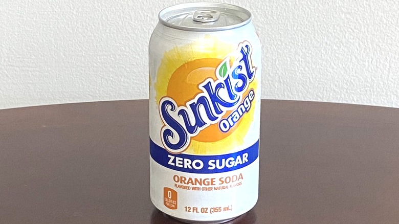 Both Sunkist Orange Soda and its zero-sugar version contain about 19 milligrams of caffeine per 12 fluid ounce serving. That's less than half the amount in a can of Diet Coke, but it's still something to keep in mind if you're considering this classic orange cola as an afternoon treat. Otherwise, it's best to "drink it in the sun," as one of Sunkist's former commercials from the 1980s stated.