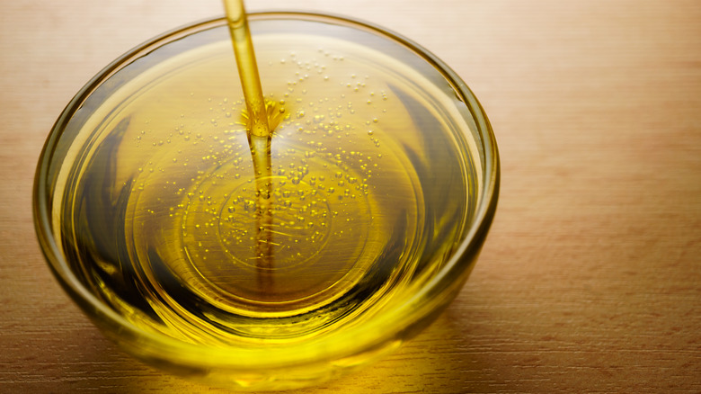 Mary Berry, an original judge on "The Great British Bake Off," is an expert on all things baked, and sunflower oil is her neutral oil of choice. It works just as well in a cake as it does in a muffin, or even a Yorkshire pudding, without muddling any flavors. That's why sunflower oil, yes, the kind made from sunflower seeds, reigns supreme as a third oil to keep in the kitchen.