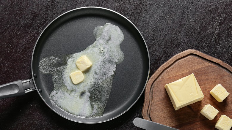 The thing about butter is — well — its flavor is simply irreplaceable. The luscious, slightly sweet, and creamy taste adds complexity and warmth to any dish. This does not, however, make it a good fat for cooking as it has a smoke point of 350 degrees Fahrenheit, making it less than ideal for use in pan frying and sauteing. So why, then, does Ina Garten use butter in her sauteed dishes? It all comes down to balancing flavor with practicality.