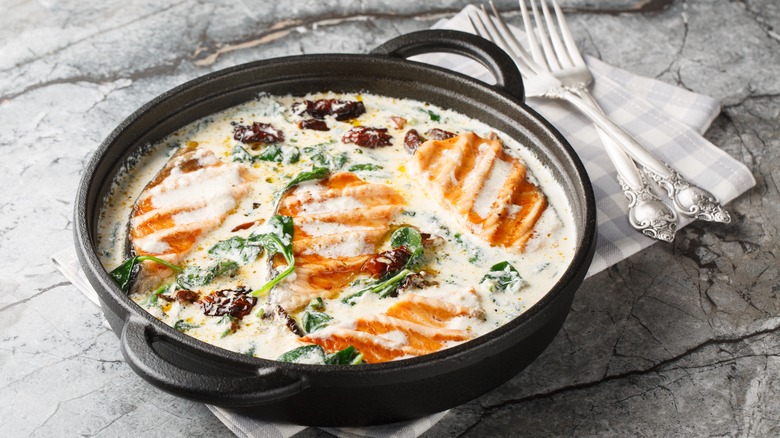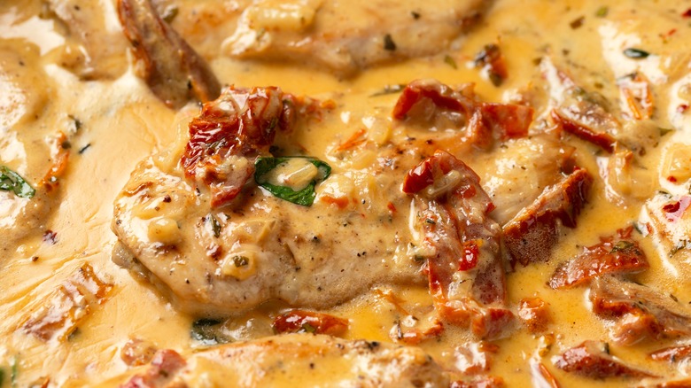 TikTok just might be the best thing that ever happened to the world of home cooking ... and also the worst. From promoting a dangerous tequila cocktail hack to ignoring the tuberculosis risk of drinking raw milk, the platform has turned people on to some really bad ideas, but then again, there's the marry me chicken trend, and that alone makes everything alright. In case you somehow missed it, marry me chicken is a dish that first went viral on social media in 2022, becoming the third-most Googled recipe of that year (per GoogleTrends). The hype hasn't died down since, with TikTok recipe videos for marry me chicken regularly accruing hundreds of thousands or even millions of views.