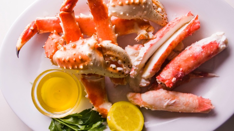 They are harvested during the early winter months, primarily between October and January. It can take king crabs around 7 to 9 years for them to reach the legal harvest size. Biologists are on standby to determine if the population is sustainable for recreation and commercial crabbing, often pausing or canceling the harvest season to allow for growth, which may contribute to availability in our grocery stores and online marketplaces. King crabs have a firm and toothsome texture with an outstanding sweet, succulent, and buttery flavor. They are, as expected, the most expensive crab leg on the market, with a price-per-pound hovering around $50 to $100. But you may get lucky — Costco has been known to sell wild-caught king crab legs for $43.99 per pound.