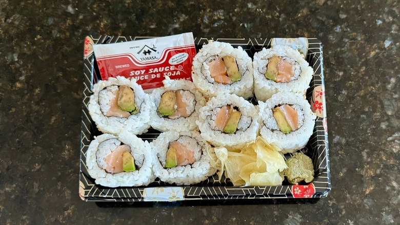 To get it straight from the start: there's probably no grocery store that can create packaged, ready-to-grab sushi that measures up to the freshly made rolls you'd get at a Japanese restaurant. Plus, the price of one roll at a supermarket tends to be higher than what you would pay at an actual eatery. Whole Foods' salmon avocado roll, for example, is relatively pricey at $10.99. But if you're seeking something that is easily accessible, Whole Foods and its salmon avocado roll is the way to go.
