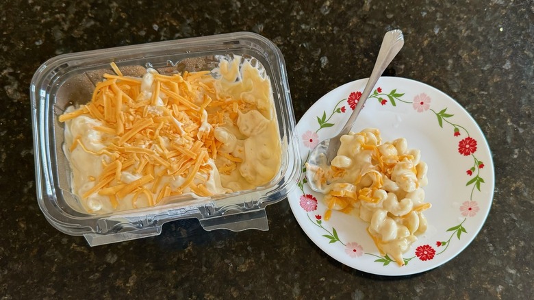 The noodles are also smothered in a pretty sharp cheddar cheese, which again, may be a good thing depending on what you like. But to us, the surprisingly potent and somewhat jarring taste solidified this Whole Foods as stronger than one might expect or want. Additionally, the macaroni and cheese costs $9.99 per pound, making the entire container come out to $14.19 — a pretty high price point for a mediocre meal if you ask us.