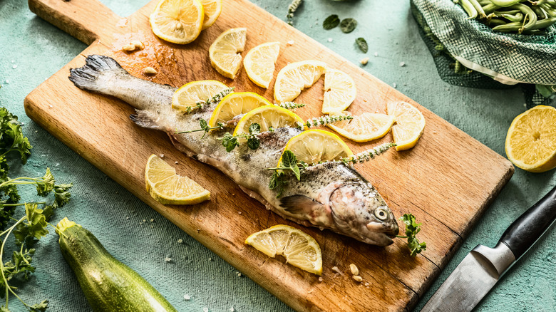 It's not just the juice of a lemon that's useful, either. Lemon zest can also add a burst of fresh, citrusy flavor without adding extra acidity. Terri Dien says one of her favorite marinades is "lemon juice and zest, thyme, olive oil, and a small dollop of mustard for a classic, French flavor." This combination tames the fishiness and enhances the natural flavors of the seafood at the same time, creating a dish that's both balanced and vibrant. Plus, there are plenty of tasty lemony fish recipes out there, so no need to stress about how to incorporate lemon into your seafood all on your own.